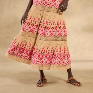 From spring days through summer nights and beyond. you’ll reach for our Garden Sunset Dress again and again! Sundown shades of pink. coral and yellow brighten a neutral background??with intricate all-over embroidery. lace insets throughout. decorative strap stitching and a center back zipper. Viscose/cotton/poly. Hand wash. Imported. Exclusive. Sizes XS (0-2). S (4-6). M (8-10). L (12-14). XL (16-18). XXL (20-22). Approx. 53l.