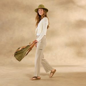 What every adventurer’s wardrobe needs: chic. flattering cargo pants made to go absolutely anywhere. Straight leg with wide hem; slash pockets at hip. flap cargo pockets on leg. Stretch cupro. Machine wash. cold; tumble dry. low. Imported. Exclusive. Sizes 24?C31. 31.25 inseam.