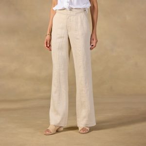 Meet our Renata Trousers: an easy. unexpected way to elevate your warm-weather wardrobe. We’ve paired light herringbone linen with a longer length and exquisite tailoring—including a flared leg and top-stitched details. Linen. Machine wash. Imported. Exclusive. Sizes 0–14. 29 inseam.