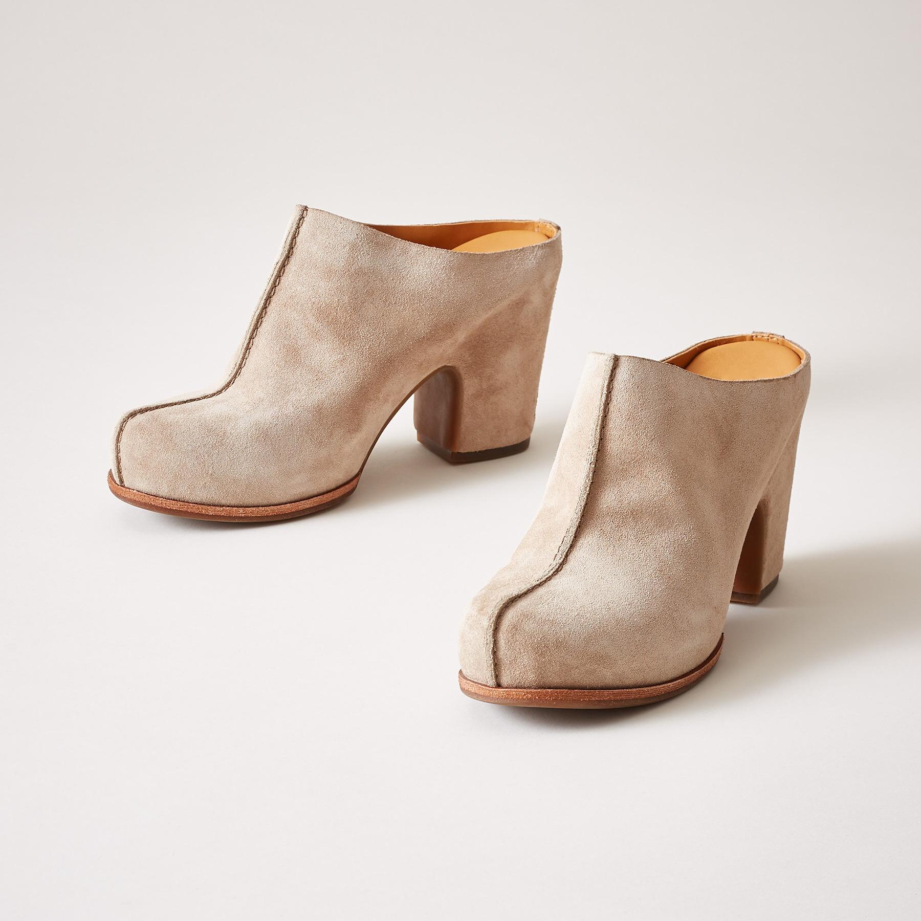 Elevated and artful. the Sagano Mules blend sculptural style with everyday sophistication. Crafted in rich leather. these bold slip-ons feature a hand-shaped wooden sole. a distinctive cutout heel. and minimalist stitching that highlights their refined silhouette. A modern statement with timeless soul.